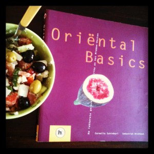 Nu pas merk ik hoe lang ik het boek niet open gehad heb. Bijna meteen stuit ik op een vergeten favoriet, de Turkse herdersalade. Simpel en snel, dat is precies wat ik zoek. Ik heb ook nog bijna alles in huis, dus dat wordt smikkelen. En om mijn verkoudheid een boost te geven, gooi ik er een gesnipperd jalapeño pepertje doorheen, bij gebrek aan peperoni.