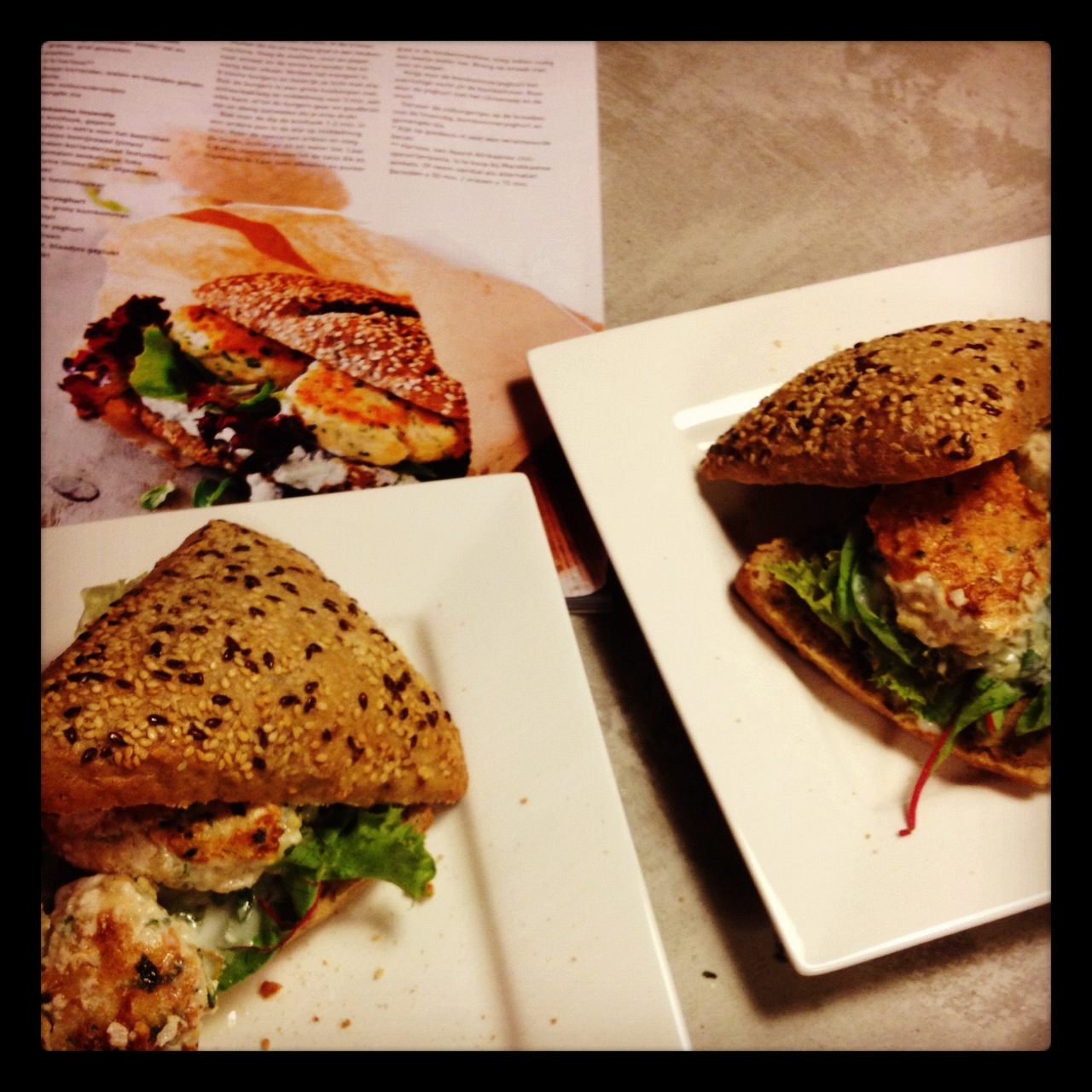 Een visburger! Het ideale compromis voor een vleeseter die van burgers houdt en voor iemand die bewust varieert en vezels belangrijk vindt. Drink er een glas fruitige rosé bij en het compromis is compleet.