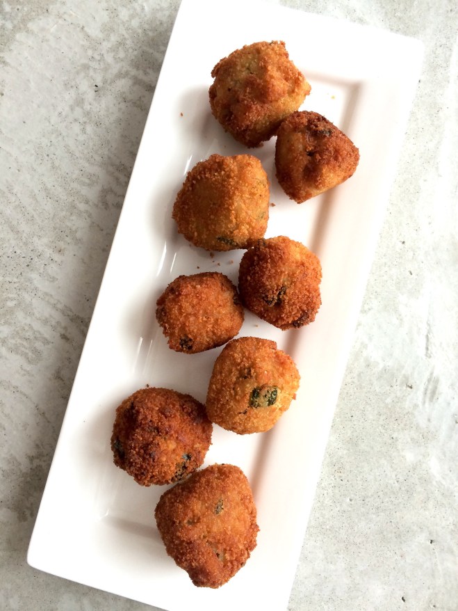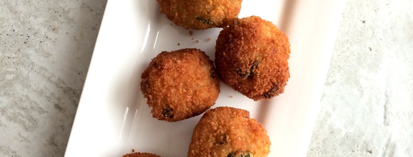 Van de courgette risotto hielden we een kleine portie over. Daar heb ik een heerlijke Italiaanse snack van gemaakt.